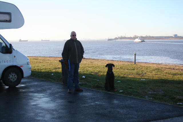 Von hier aus sind wir dann nach Cuxhaven gefahren, wo Michael schon auf uns wartete. Wir inspizierten den Platz und fanden ihn nicht sehr überzeugend. Es fuhren eh nicht viele Schiffe. Michael hatte schon mit den Spechts kommuniziert, die 10 Minuten bevor wir in Bremerhaven waren, dort aufbrachen um nach Bremen zu fahren. Auf halben Weg haben sie kehrt gemacht und kamen nun auch nach Cuxhaven.