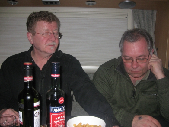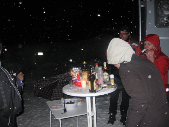 Zu Trinken gab es reichlich in Form von Eierlikör, Kirschlikör, Eierpunsch und goldenen Tequila. Auch Reiner zauberte aus seinem Womo ein Kasten Göller hervor.