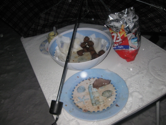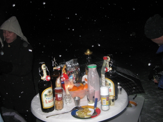 Gegen 19:00 Uhr wurde das Essen serviert, aus dem schwedischen Möbelhaus gab es Frikadellen, Rosenkohl und Bratkartoffeln von Marlies, Käseecken und Fleischwurst