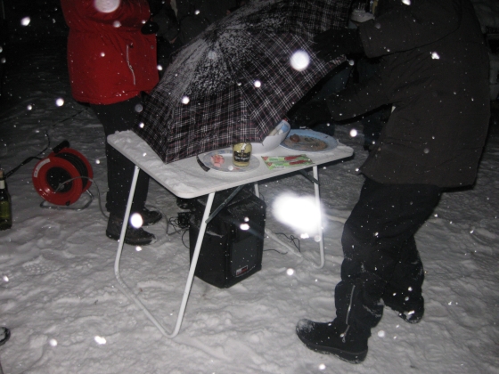 der Himmel um 24:00 Uhr versprach nichts Gutes. Schneegestöber und viel Nebel ließen keinen guten Blick auf die, in den Himmel steigenden, Raketen zu