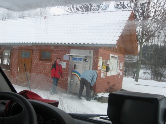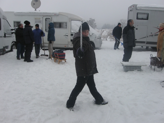 Unser Nachbar Wolfgang (Stehtisch) hatte denselbigen im Womo und dazu noch fetzige Musik, hierzu gibt es bereits einen Clip unter YouTube, der das Gesangselend demonstriert.